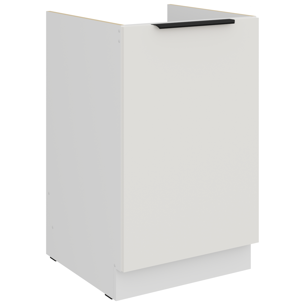 Alsó konyhaszekrény mosogatóhoz. A szekrény egy előlappal rendelkezik. Szekrény belső része fehér kivitelben. A fogantyúk furatai nem átmenő furatok (vakfuratok). |