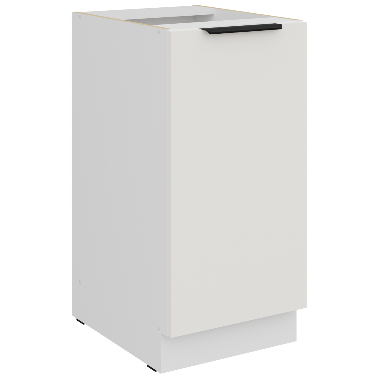 Szekrény belső része fehér kivitelben. A szekrény egy polcot tartalmaz A fogantyúk furatai nem átmenő furatok (vakfuratok). |