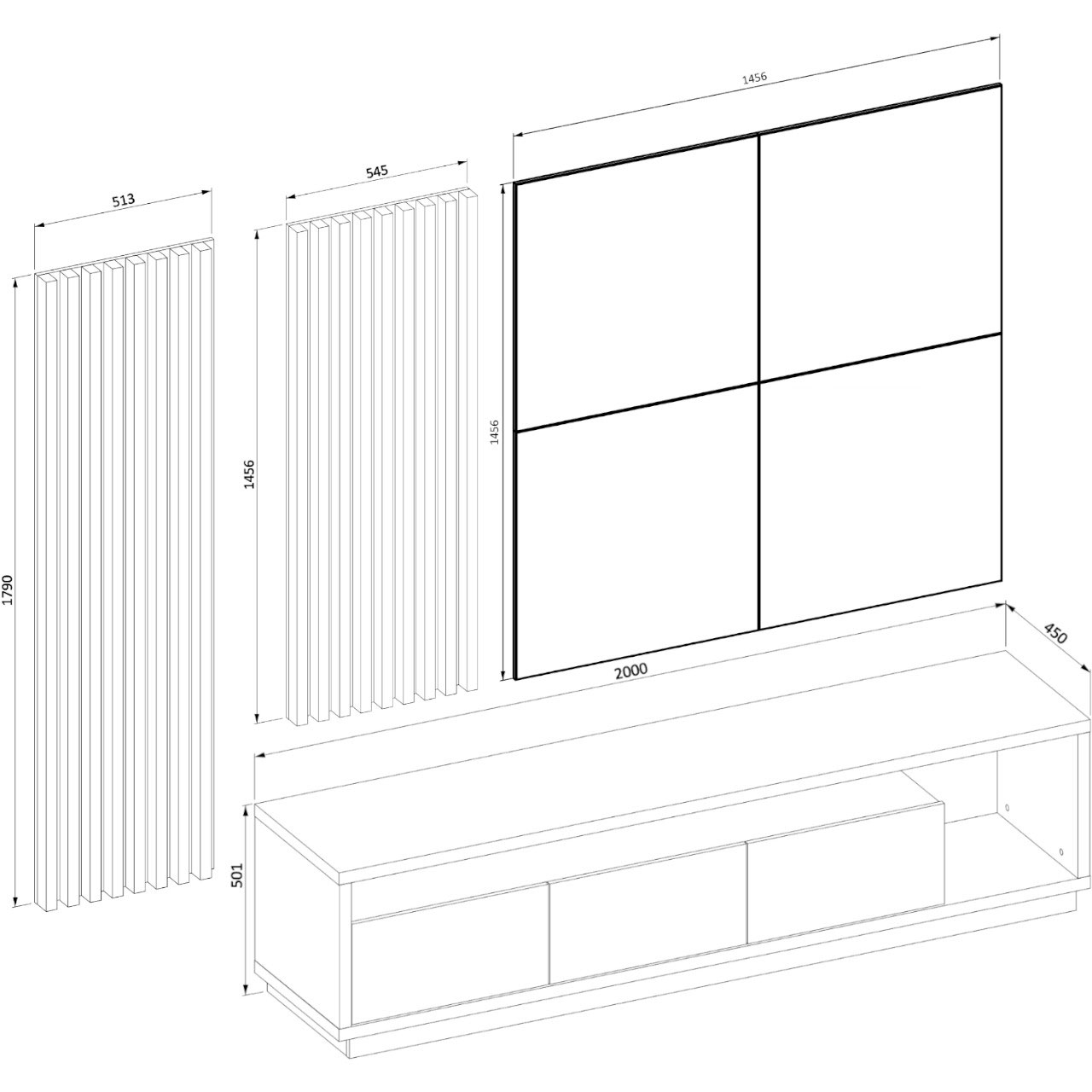 Fali panel lamellákkal CELINE 02 (51/179/7) Fali panel CELINE 03 (146/146/2) Fali panel lamellákkal CELINE 04 (55/146/7) TV szekrény CELINE 40 (200/50/45) |