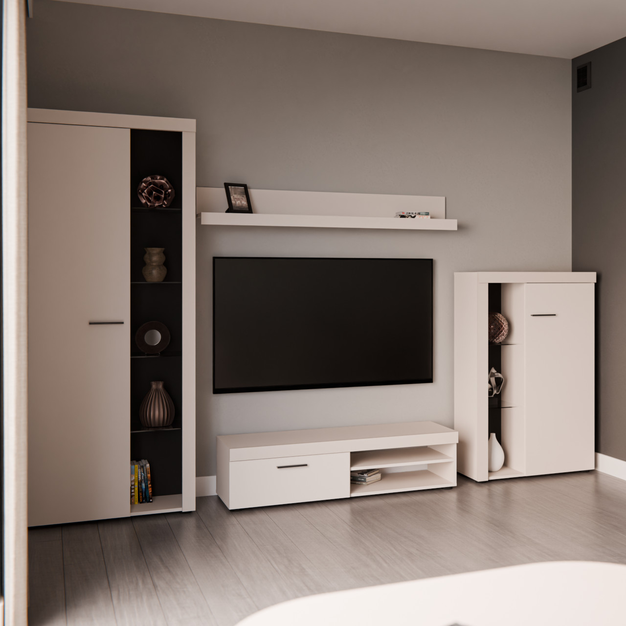 Magas vitrin (75/190/33,8) TV szekrény (120/31,5/40,3) Fali polc (140/20,5/19,5) Alacsony vitrin (75/117/33,8) |